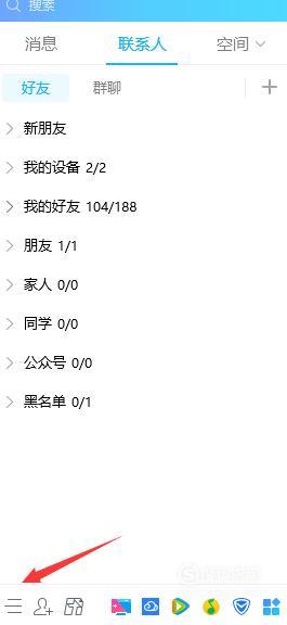 首先打开QQ,选择界面左下角的“三”