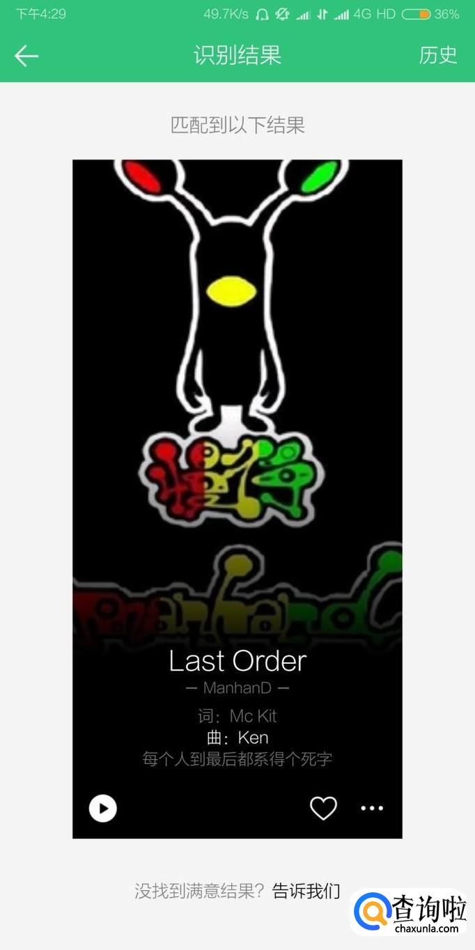 经过几秒钟的识别之后,最后软件就会显示当前播放的音乐详情。
