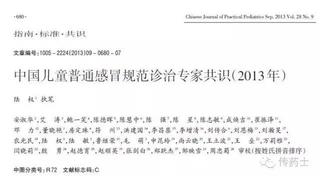 最后 再来看看2013年发布的《中国儿童普通感冒规范诊治专家共识》,这篇共识是由国内顶尖儿童专科医院或儿科的大咖们编写的。普通感冒影响患儿的健康和学习积极性,用药不当较易引起不良反应,甚至对健康造成的危害甚于疾病本身。