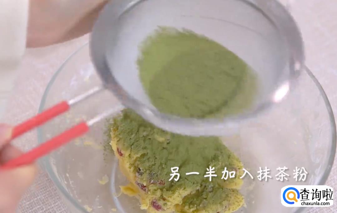 黄油、蔓越莓坚果碎、抹茶粉 适量、糖粉 50克、鸡蛋液 14ml、低筋面粉 110克