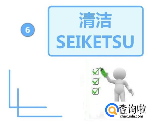 清洁SEIKETSU,来源日语,意在长久保持整理、整顿和清扫的成果,可量化考核,定期检查;