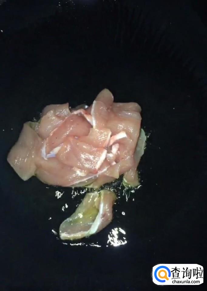 首先我们将平菇清洗干净,撕成小块备用,肉切片备用