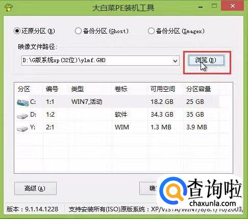 登录大白菜装机版pe系统桌面,系统会自动弹出大白菜PE装机工具窗口,点击“浏览(B)”进入下一步操作。