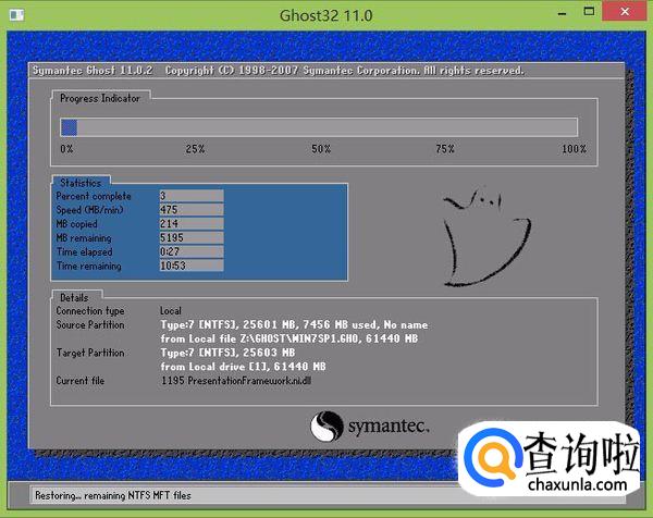 此时耐心等待系统文件释放至指定磁盘分区的过程结束。