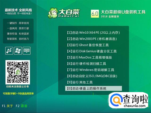 进入大白菜pe系统后,选择“启动Win10 X64 PE(2G以上内存)”选项并回车确认。