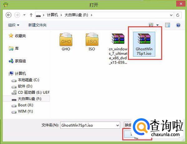 点击打开事先存放在u盘中的系统镜像包,点击“打开(O)”后进入下一步操作。