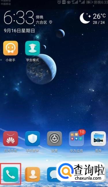 首先,我们打开我们的华为手机,然后我们点击拨号;