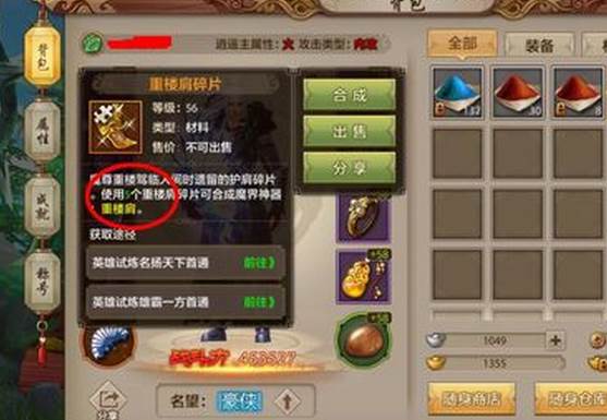 英雄试炼通关124,战斗力50W以上可以拿5个重楼碎片合成,后面通关还可以继续获得重楼,继续升级。50万拿重楼,60万拿鬼重楼,然后到NPC石义那觉醒。