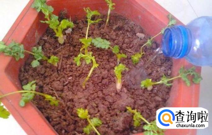 最后我们需要在土壤周围浇水让香菜根更加的贴合土壤,然后把种植好的香菜根放在有阳光的地方,过几天就香菜就会长出来。