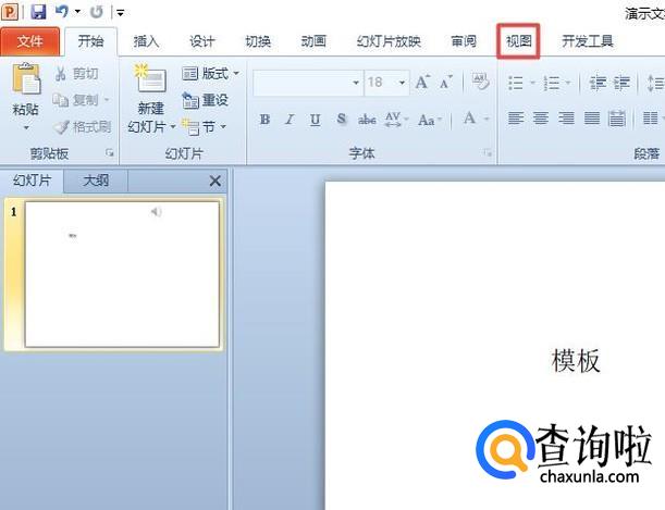 首先,我们打开一个模板中含有自带的音乐的ppt文档,然后我们点击工具栏中的视图;