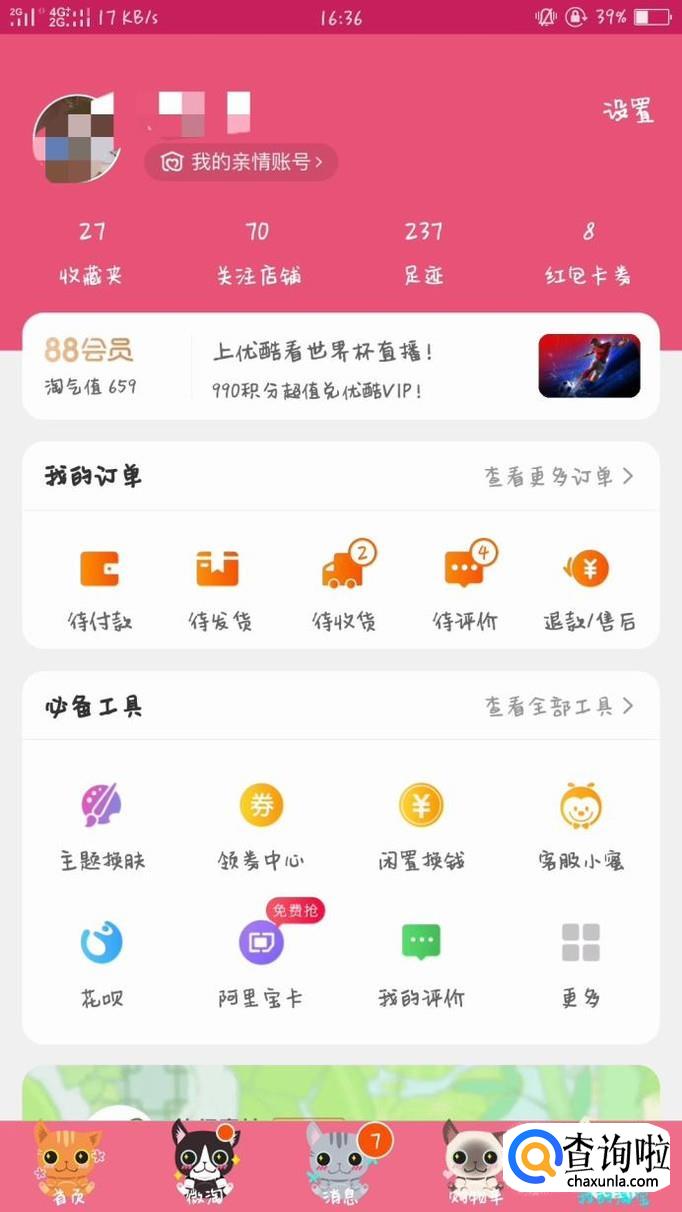 首先打开淘宝,再点击右下角,进入个人中心,再点击全部订单。