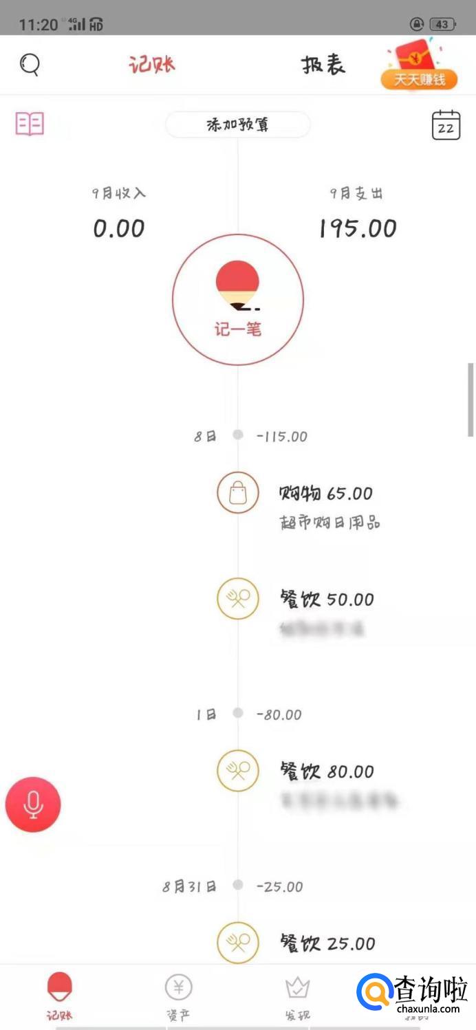 第一款鲨鱼记账软件,是我觉得比较好用的一款记账软件,明细的左边是收入,右边是支出,每天都有合计支出了多少。