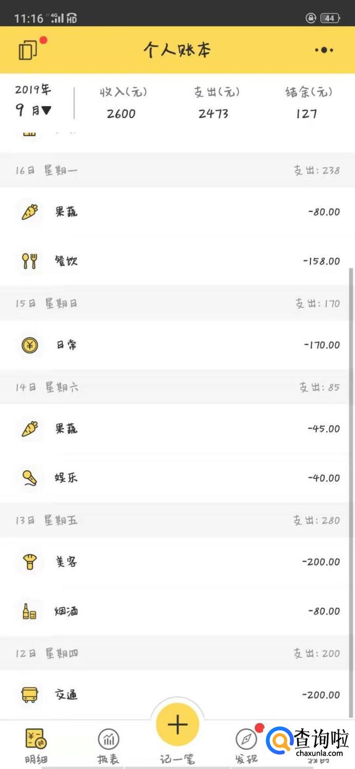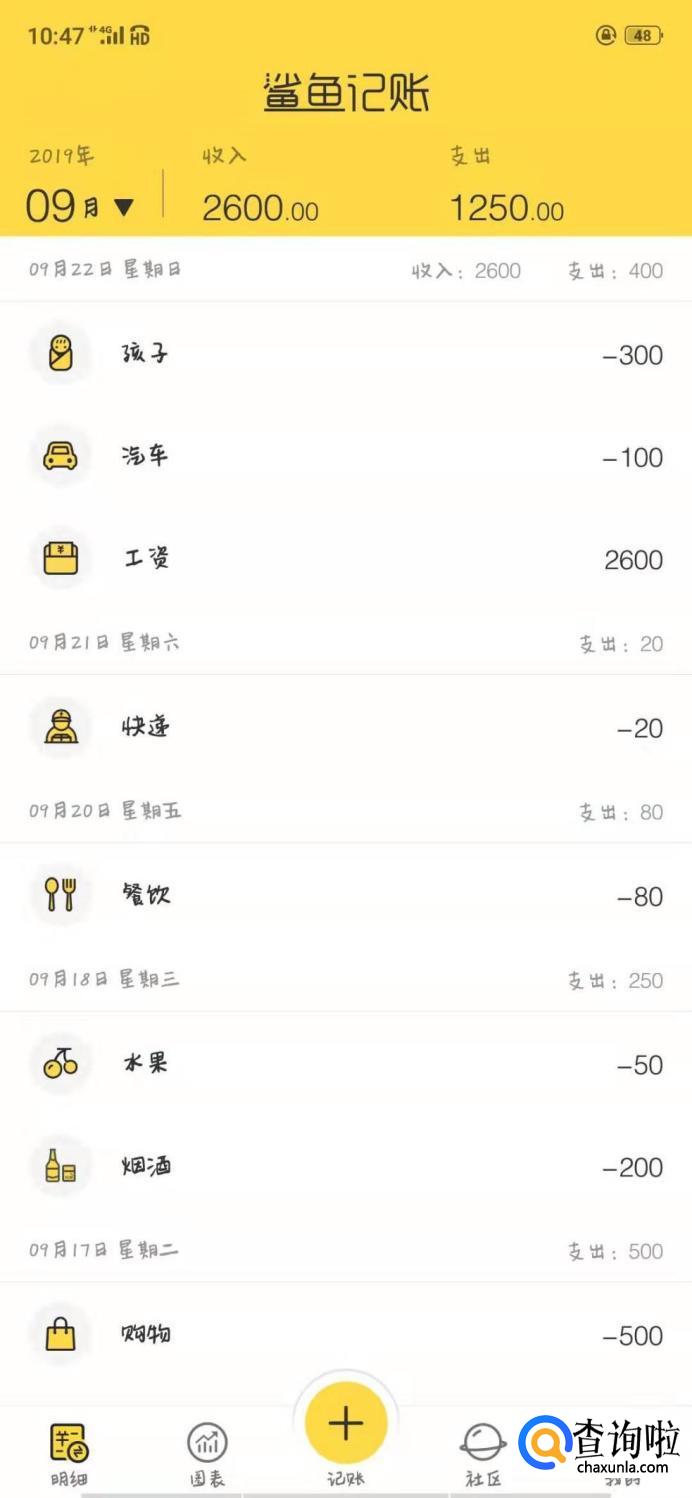 最后就是有鱼记账这款软件,下滑就可以记一下每天的消费,上下滑动可以看到每次记录的消费明细。