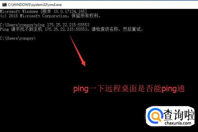 然后我们需要ping一下远程桌面的地址是否能够正常的ping通,如下图所示