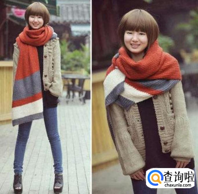 缠绕并遮住下巴,挡住下巴和两夹肉肉多的地方围巾的宽度与肩膀形成参照,这样就会显得肩膀也瘦了。而且也会显得整个人非常娇小哦。