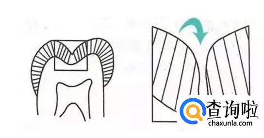 窝沟大多存在于磨牙,即我们俗称的大牙。而大牙表面的沟壑剖开了看如下图所示。