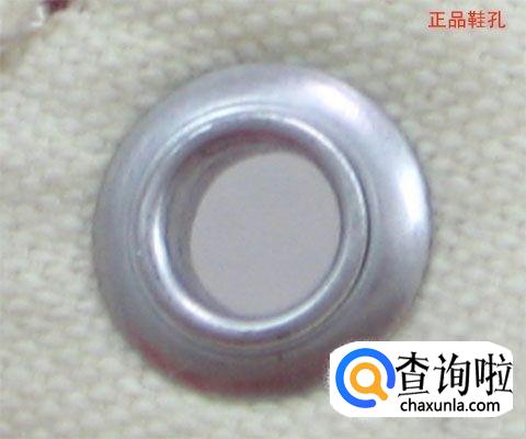 验证方法:正品CONVERSE的鞋带孔内侧均为光滑无瑕疵,非常平整。而仿品匡威的鞋带孔内侧则为粗糙不堪,做工不精细,坑坑包包的,对比下面两张图,一眼就可以看出正品匡威和仿品匡威的区别。