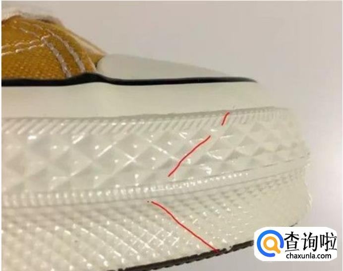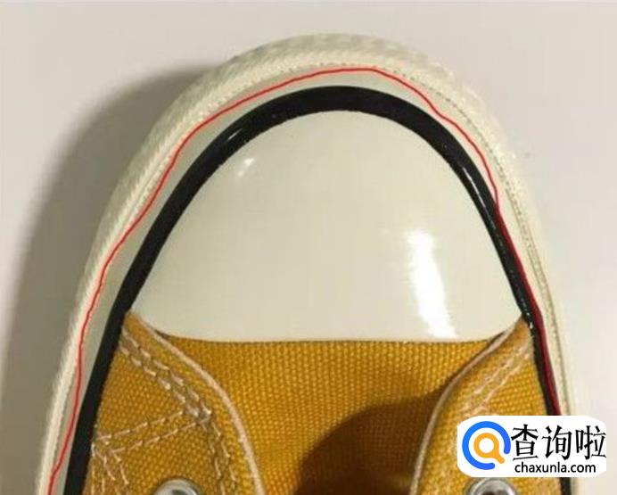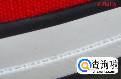 验证方法:只要是双层围边的CONVERSE硫化鞋,围边厚度绝对够厚,才能保证牢固,正品的匡威围边一般都是两层。仿品为了节约费用,围边一般都做的比较薄,认真观察一下匡威鞋子的围边就可以看出区别。