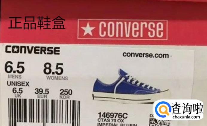 验证方法:假货鞋盒随处可见掉色现象。正品鞋盒上面有三点信息:①现在所有的 1970s 均为越南产,MADE IN VIETNAM,因此鞋标与鞋盒上均有代表越南工厂的 9A 代号。