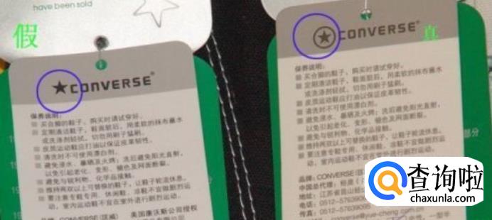 验证方法:自从2007年第三季度以后(即173以后的货号),CONVERSE的厂家在匡威的商标上都做了些小改动,原先单个的星星外都加了一个圈圈,用这样的方法可以区别匡威的真假。