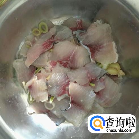 在切好的鱼片和鱼骨加入料酒,生姜,花椒等,然后混匀,再加入料酒腌制一段时间后拿出来清洁干净,再用生姜和其它辅料泡一段时间。