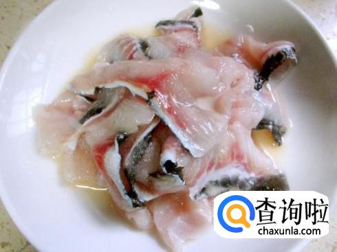 先把材料准备齐全,把鱼处理干净,并且把骨头和肉分离开,可以把鱼按照自己的喜好切成块状或者片状,这里就以片状为例子。