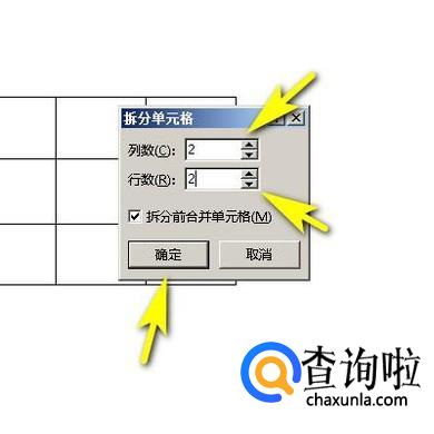 接着,在行数与列数这两处分别设置参数,按自己的实际需要来设置,在本指南中分别设置为2;接着,点确定。