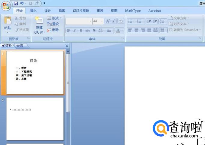 生成幻灯片效果如下图所示,按照这种方法,就可以给整个目录都设置超链接了。