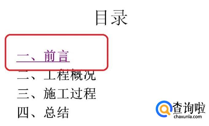 如图所示,在目录中选中第一章标题文字后,右键点击,弹出菜单中选择“超链接”。
