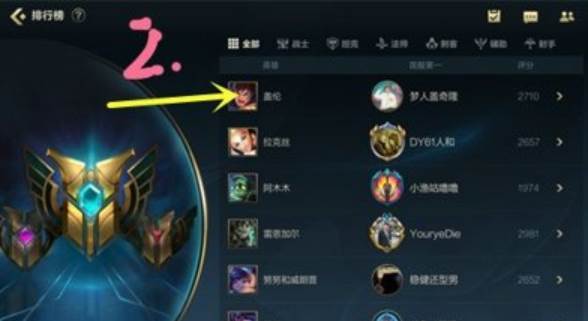 2、进入排行界面后,选择下方第二栏【英雄】进行切换,随便找一个英雄头像点进去。