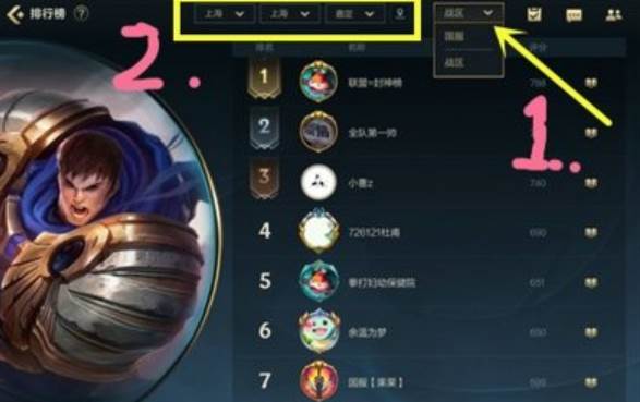 点击主界面下方【排行】;选择【英雄】进行切换;点击【国服】,切换至【战区】;选好自己的行政归属,此时战区定位就完成了。注意:开启此功能时,需开手机的定位系统。