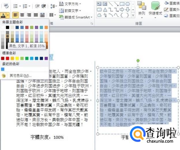 字体灰度设置时,首先选中要调整灰度的字体,然后点击选取相应的颜色即可。 - 03
