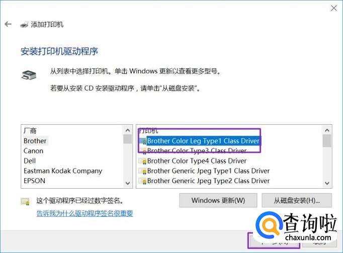 弹出的界面,我们找到我们需要添加的打印机驱动,然后点击下一步,之后就会进入安装了。