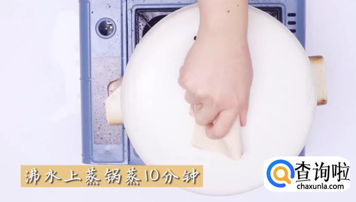 揉完后,放入蒸锅里,将水煮沸后,蒸10分钟。