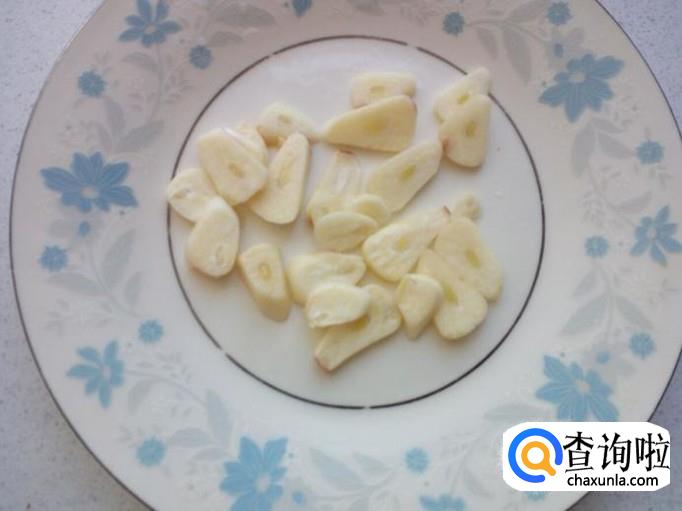 蒜去皮,用水清洗干净,控干水分,切成片。
