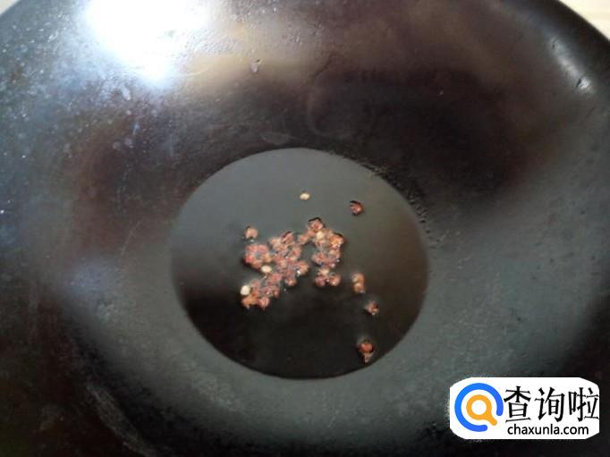 锅内放入油加热,油三,四成热时,放入花椒,爆香(小火)。