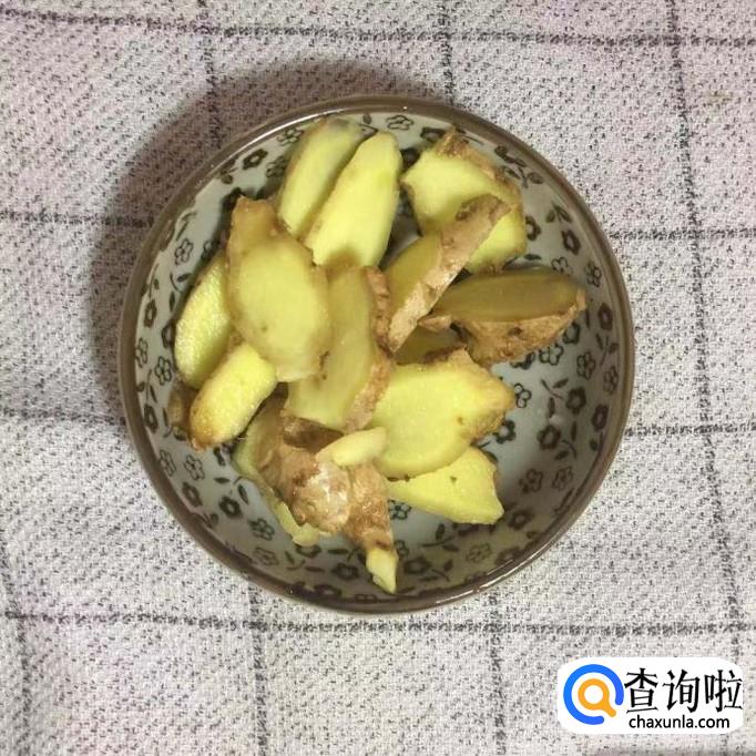 然后把生姜切成薄片,如下图所示。小贴士:关于生姜的选择,小编建议大家最好选择老姜会比较好。