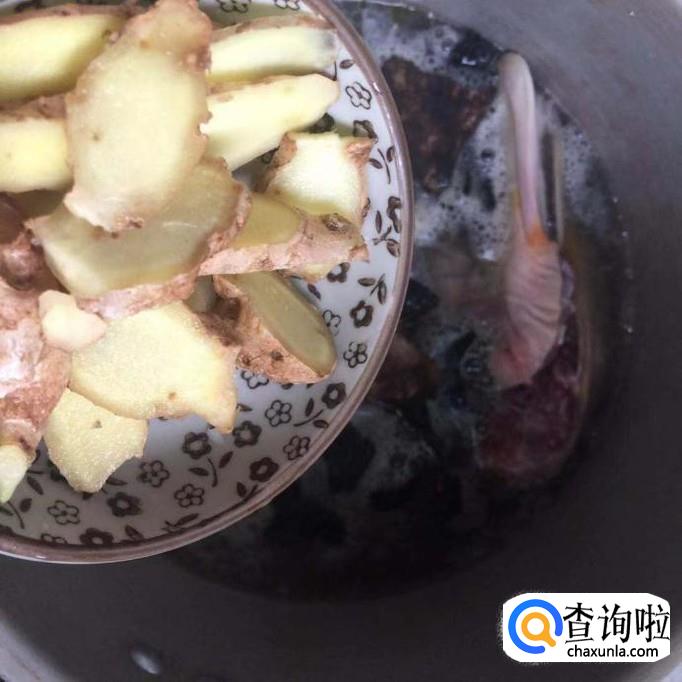 接着把切好的生姜片倒入锅中,开大火煮30分钟转小火煮一个小时,如下图所示。