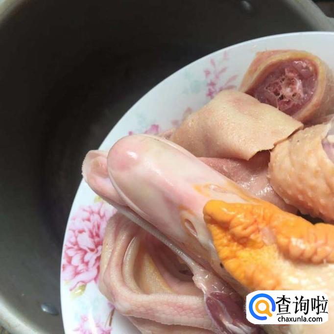 首先将老鸭切成小块,如下图所示。小贴士:关于鸭子的选择,小编觉得番鸭会比较好吃,有条件的朋友们可以选择买番鸭回来炖。