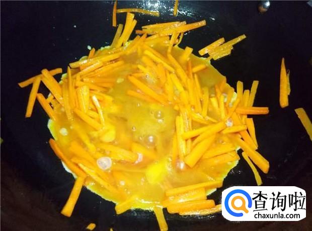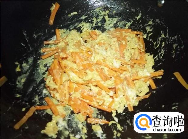 鸡蛋液很容易熟的,大概翻炒三分钟左右,即可熟了,鸡蛋和胡萝卜融合在一起,非常好吃。