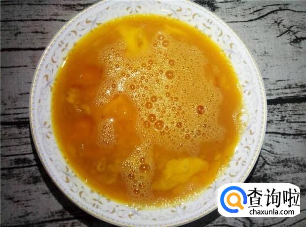 土鸡蛋打在盆子里,加入适量的酱油和料酒,用筷子均匀打散。料酒可以去腥味,提鲜。