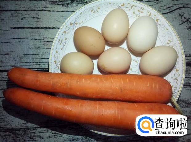 准备好所有原材料:胡萝卜2根,土鸡蛋6颗。