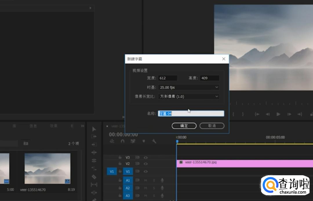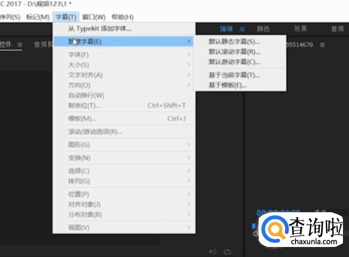 依次点击菜单栏中的“字母”、“新建字幕”、“默认静态字幕”。