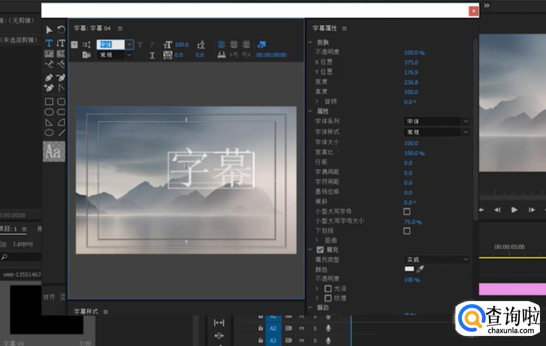 进入字幕编辑器界面,然后点击左侧工具栏中的文字工具,按钮出视频画面中画出文本框。