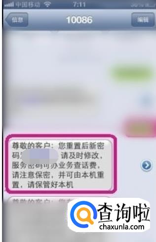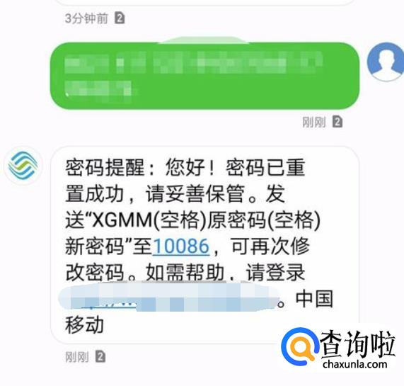 挂掉电话之后,中国移动就会给我们发短信,短信里面有新的服务密码。