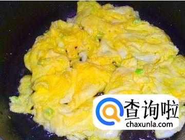 锅中加油,油8分热时加入鸡蛋,鸡蛋下锅即可用锅铲翻炒,炒成烂蛋,