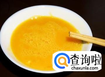 鸡蛋打于碗中,用搅拌器将蛋黄与蛋白均匀地混合,备用