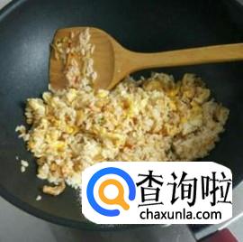 加米饭适量与锅中,翻炒均匀,炒至米饭变黄色,加盐,葱,炒匀即可