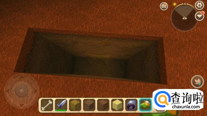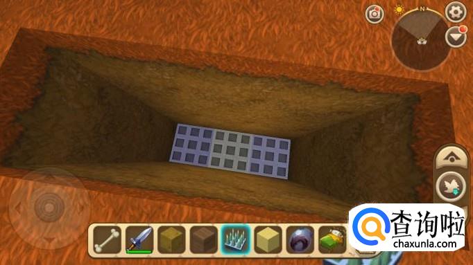 首先我们先挖一个三层深的地洞,如下图所示。