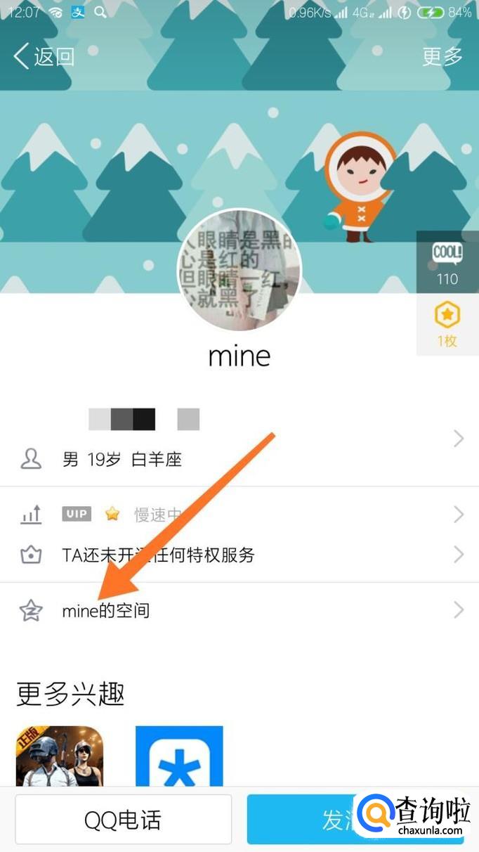 然后点击这个好友的头像这里,点击他的空间,如图所示。